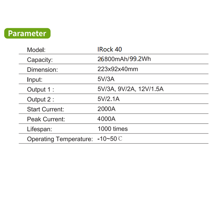 【Car Battery Booster】: Featured with 4000A Peak Currency, Irock 40 portable car jump starter can start dead batteries for 12V vehicles in seconds, rated for all gasoline engines and up to 10L diesel engines, even in the extreme environments from -4°F to 140°F, saving your hassle and stranded on roads for assistance.