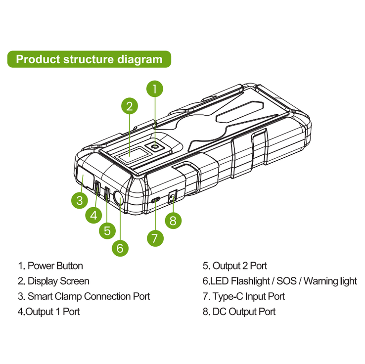 【Advanced Design】: The forerunner of car battery jump starter pack, featuring a rugged surface against scratching and marring; ultra-compact weighing just 2.4 pounds; the build-in LED flashlight guarding you against the emergency situation with SOS and strobe signal; dust-right and drop-resistant jump cable kits for car.